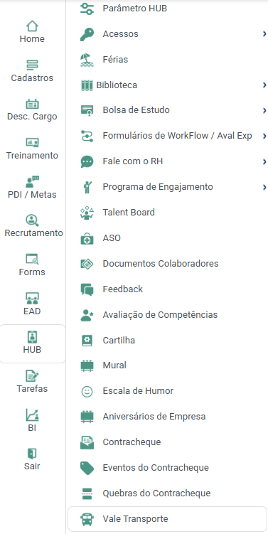 Objetivo: Local onde definimos o que poderá ser acessado no sistema HUB, ou seja, quais botões devem aparecer para o colaborador.