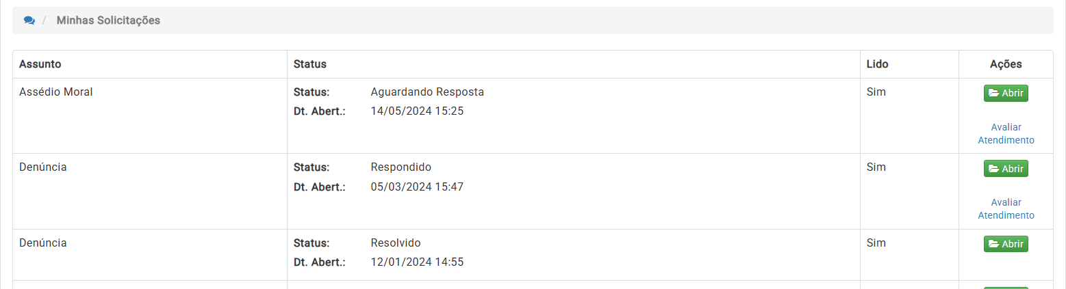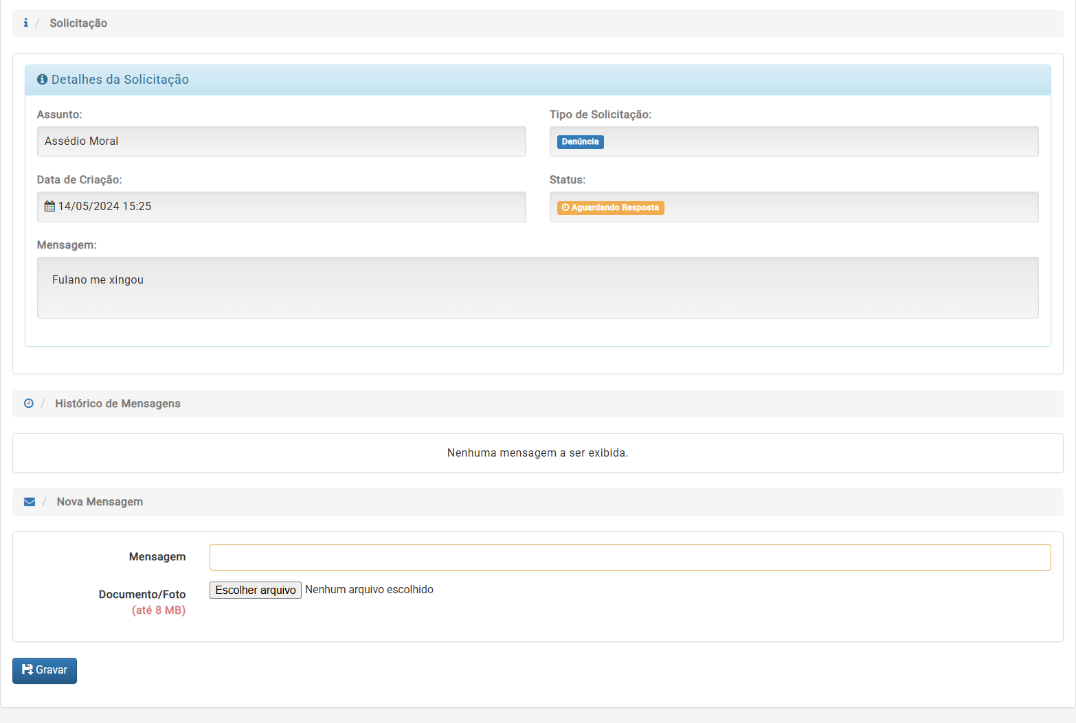 Tipo de denúncia: Define as categorias de denúncias que podem ser feitas. Ex: Assédio.