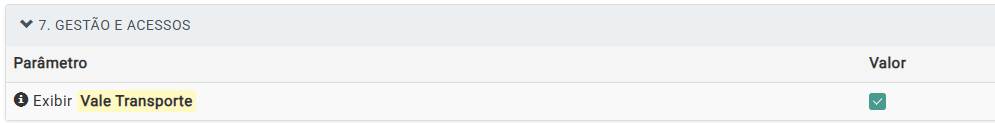 Exibir Vale Transporte: Quando selecionado, o sistema exibirá um botão de vale transporte.