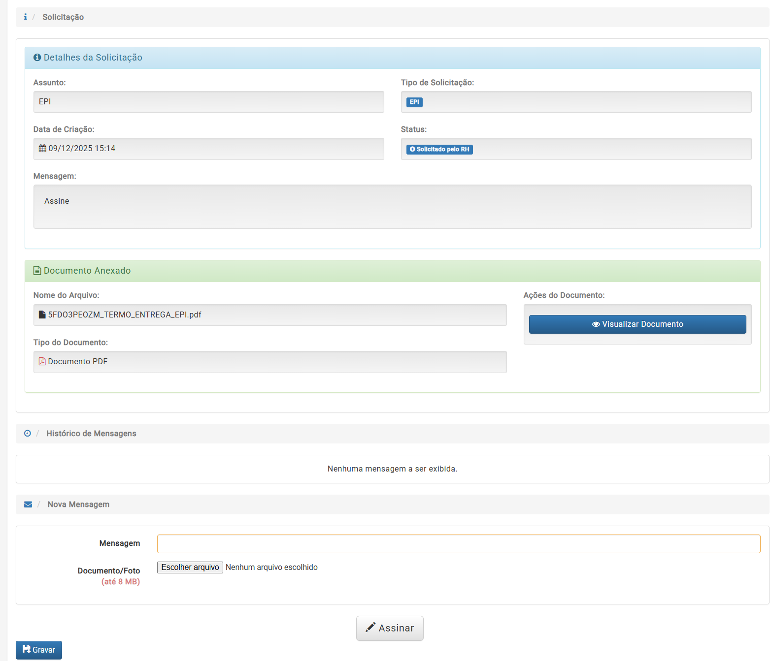Manual: Quando selecionado, temos a disposição uma caixa de assinatura para que o colaborador possa assinar como se estivesse assinando em um papel.