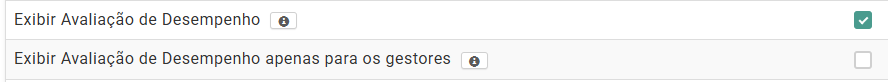 Exibir Avaliação de Desempenho apenas para os gestores: Quando selecionado, indica que o sitemas deverá exibir Avaliação de Desempenho apenas para os gestores.