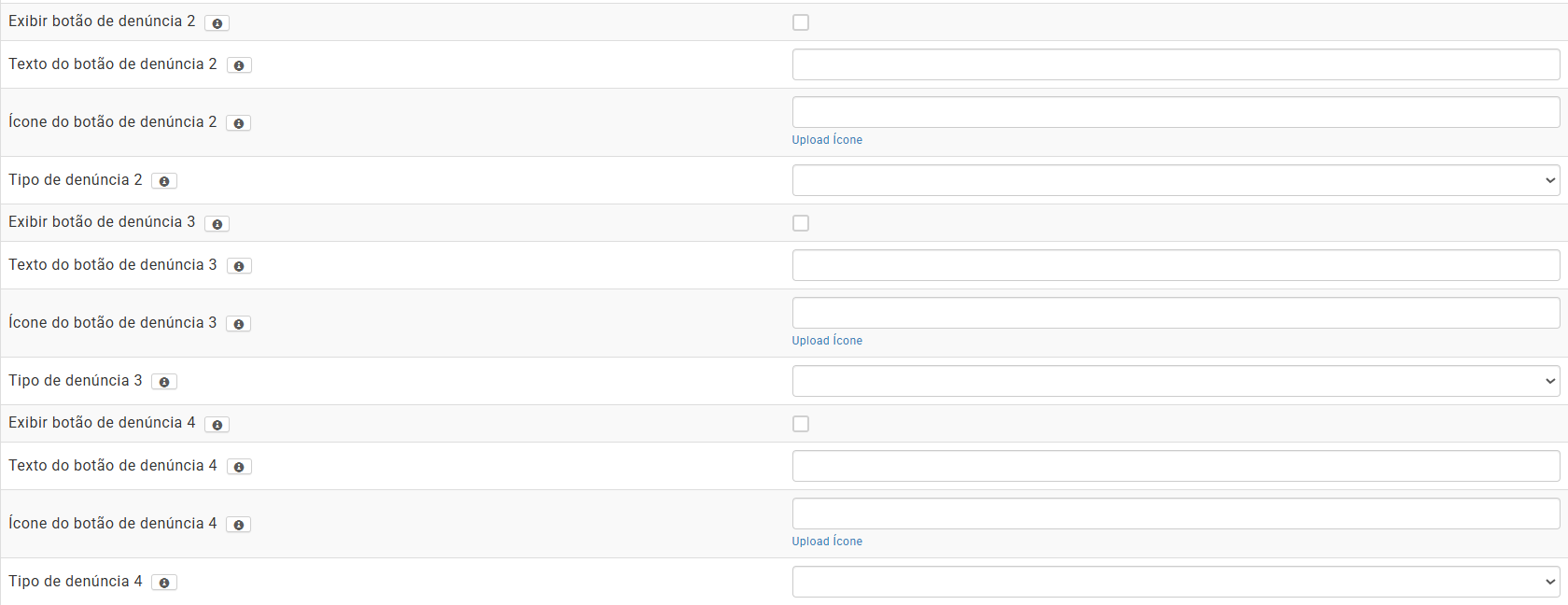 Ícone do botão de denúncia: Permite a personalização do ícone associado ao botão de denúncia, através de um upload de ícone.