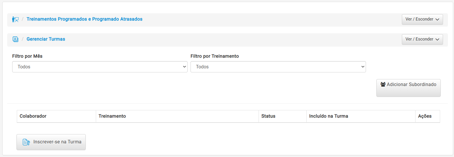 Exibir Meus Treinamentos: Quando selecionado, exibe um botão para que os usuários vejam os treinamentos que estão inscritos ou concluídos.