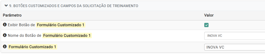 Valor de percentual da solicitação de treinamento: Quando selecionado, define o valor percentual utilizado no controle acima. Por exemplo, "24,00".