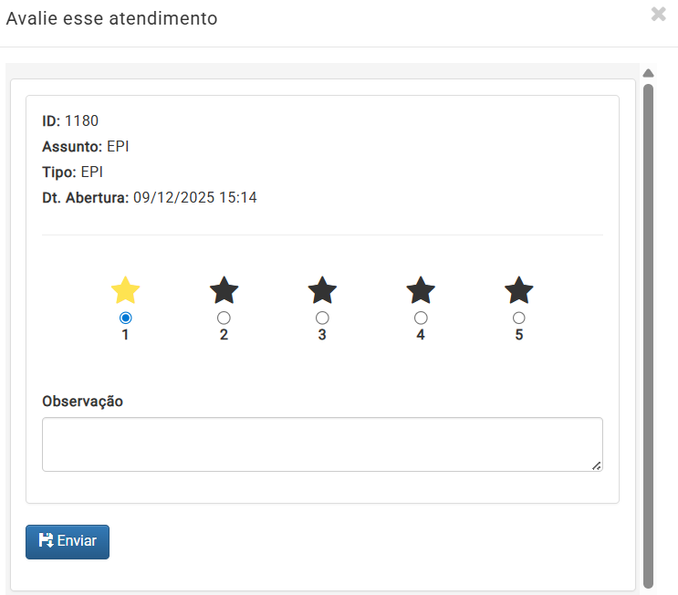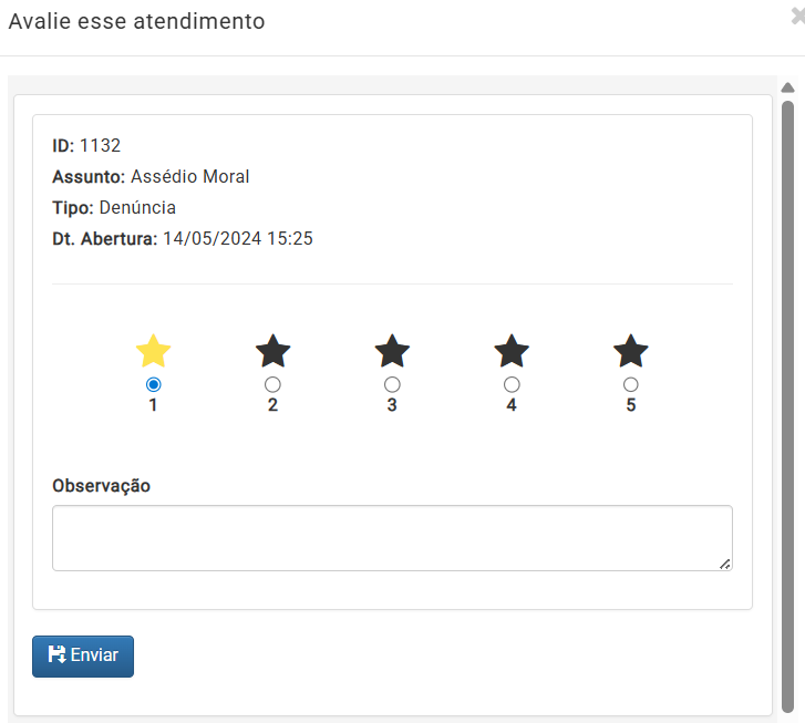 Se marcado, permite que o colaborador avalie o atendimento: Habilita a função de avaliação de atendimento do RH pelos colaboradores.