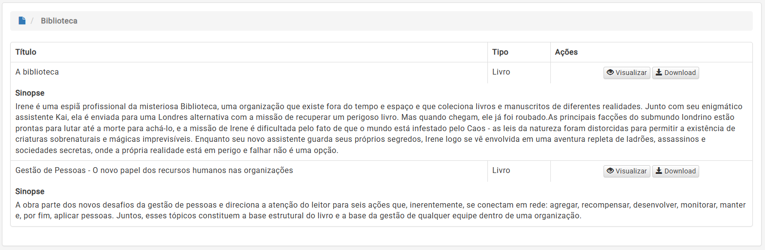Exibir a tela de biblioteca: Quando selecionado, indica que deve exibir a tela de biblioteca.