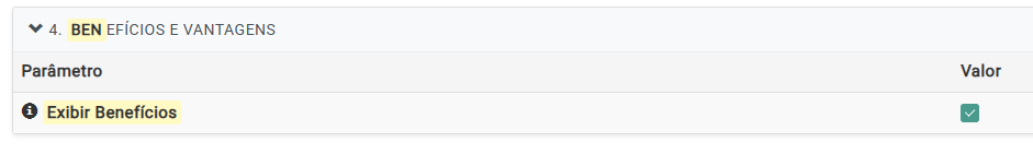 Exibir Benefícios: Quando selecionado, exibe informações sobre os benefícios oferecidos aos colaboradores.
